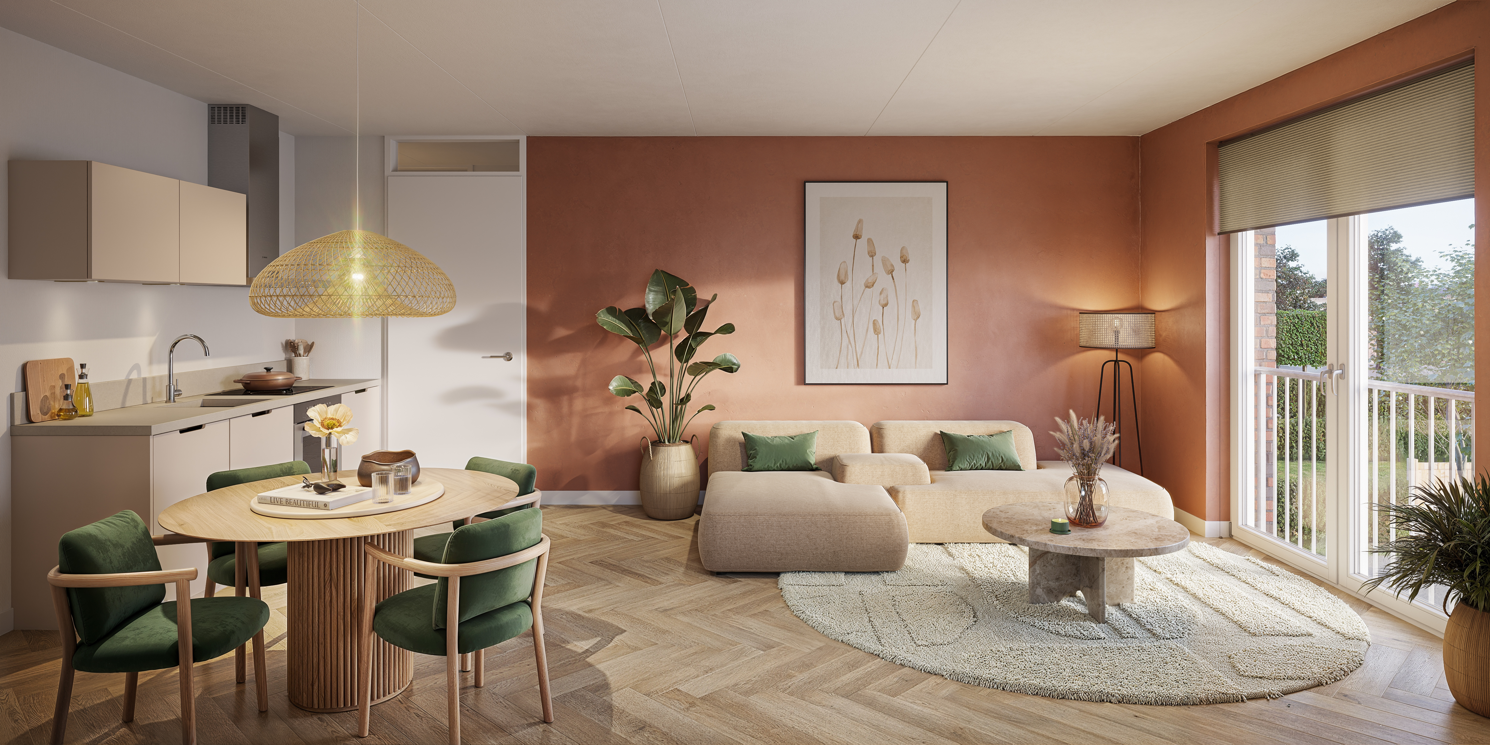 De appartementen hebben een woonoppervlakte van circa 50 m² en beschikken over een praktische indeling met een lichte woonkamer, open keuken, één slaapkamer en een moderne badkamer. De woningen op de begane grond hebben een eigen tuin, de appartementen op de verdiepingen kenmerken zich door veel daglicht.
